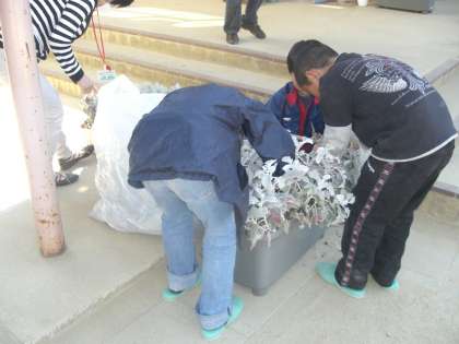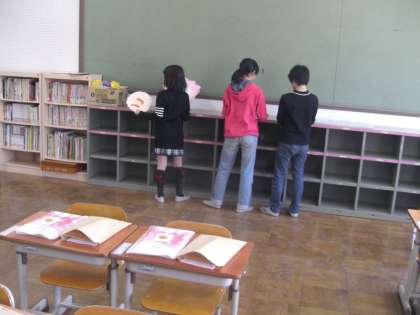 そこで、高学年の児童が学校に来て、新入生を迎える準備をしてくれました。