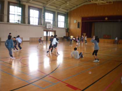 上級生が、ルールを決めて、全校たくさんの児童が一緒にドッヂボールを楽しんでいます。このような活動の中で子どもたちの中に決まりの大切さを学んでいきます。