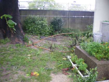 早朝より校内の状況を点検をしました。木の枝が折れていたり,コスモス,稲が強風で曲がったり,倒れたりしていました。危険個所はありませんでした。