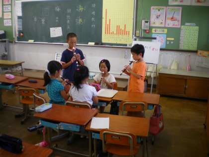 お昼休みです。昼休みに校舎からリコーダーの音が聞こえてきます。