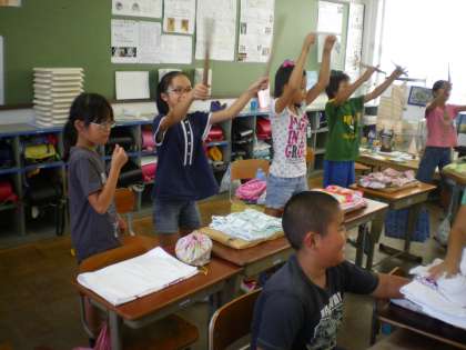 上の階からはどんどこどんどこ,5年生は太鼓の練習です。