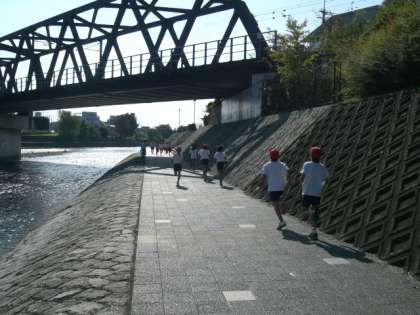 鴨川の河川敷,光公園付近で三校合同マラソン大会を行いました。