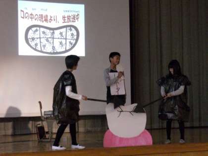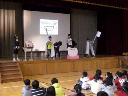 保健委員会が,歯みがきの大切さを訴える劇をしました。