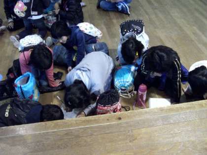 3校合同グループで知恵を出し合って、館内に設置していあるポイントを回りながらクイズを解いていきました。