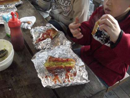 野外炊事の手始めは、パックドッグです。