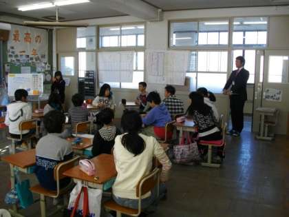 26年度小中一貫校統合に向けて、まずは互いの学校の様子をよく知ることが大切。今日は月輪中学校から先生が一日交流に来てくださいました。各学年の教室に行き、子ども達と一緒に学習したり遊んだりします。6年生は、あと4ヶ月で中学生。中学校の様子について、いろいろ質問を考えているようです。