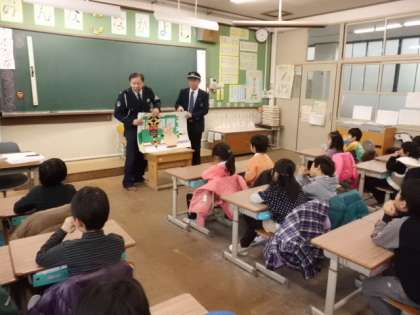 その後,東山警察署の方から交通安全のお話を聞きました。