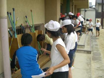 その中を4・5・6年生力を合わせて,運動会の準備をしました。