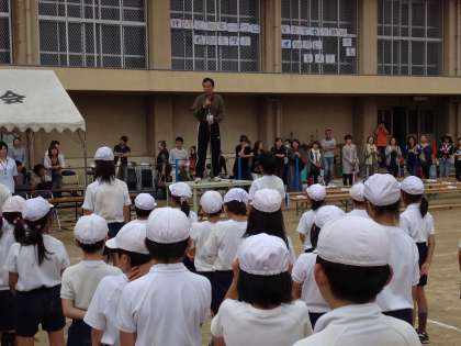 閉会式の後,高学年児童と保護者教職員が協力して後片付けをしました。一橋の心が一つになりました。感動的な運動会でした。
