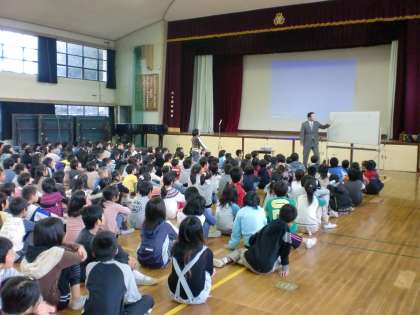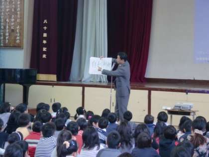 朝会では,校長先生からは天国と地獄で暮らす人々のお話がありました。