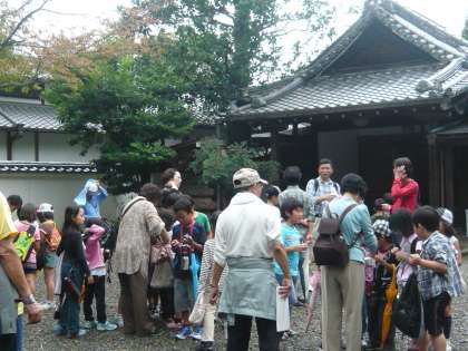 元一橋小学校のグランドを出発し、今熊野観音で休憩をとり、東福寺をまわって出発地点にもどりました。およそ2時間歩きました。月輪小学校からは17名の子ども達が参加しました。