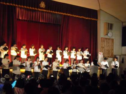 講堂中に響いたきれいな歌声と一緒に、子どもたちも歌っていました。