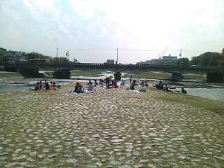 お弁当は鴨川公園で食べます。日が照ってきて 暑くなってきました。