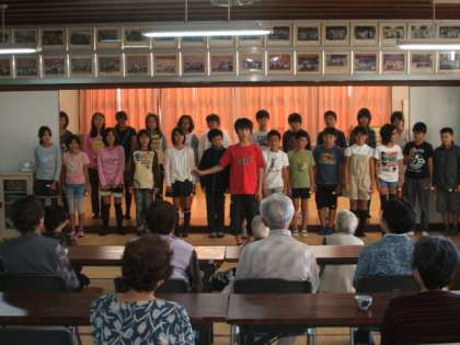 「ふるさと」を参加していたお年寄りの方,お世話してくださった役員の方といっしょに歌いました。