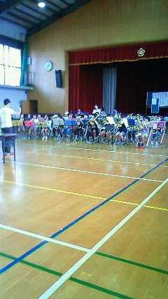 一橋小のグラウンドでは、野球チームの練習があり、金管バンドの練習の子とともに、お互い頑張ろうなと声をかけあっていました。3校の合同練習が始まりました。息のはき方などのをおさらいした後、ラバーズコンチェルトなどの音合わせをしました。