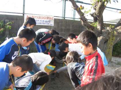 運動場で遊んでいた低学年の児童画と手もうらやましそうに見ていました。