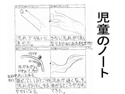 砂場で川や山を作った経験がこの実験に生きてくるような気がしました。