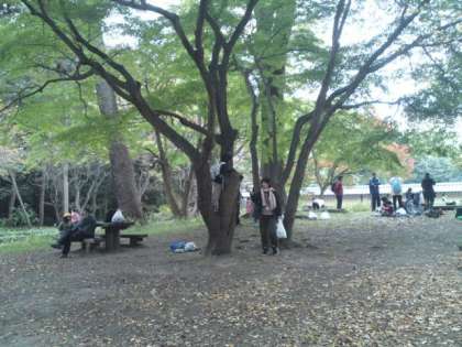 なかよし遠足で京都御苑に来ています。母と子の森で、なかよし仲間と木登りしたり、木の実や松ぼっくりを拾ったり、宝さがしをしたりして楽しみました。
