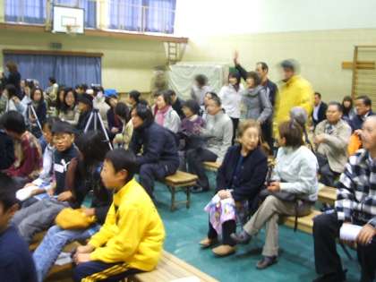 始業のチャイムが鳴ると,地域・保護者の皆さんが続々ご来場いただきました。