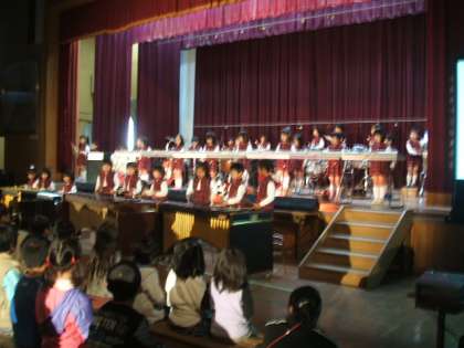 午後のプログラムが始まりました。おとなりの保育園,永興保育園年長組の合奏です。