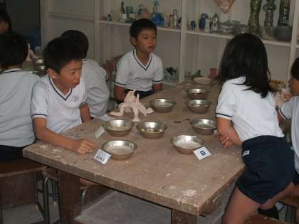 絵や工作なら,色を塗っていくと,だんだん仕上がりが見えてくるのですが,釉薬での彩色は,焼き上がるまで,予想するしかありません。
