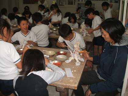 3年生は,獅子舞の彩色をしました。色釉薬を素焼に塗っていく方法でしました。