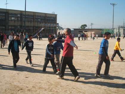 走り終わったら,もう一度「♪さんぽ」が流れてきますクールダウンであるきますが,まだまだ,走り足りない児童もいっぱいいて,クールダウンになっても勢いがとまらない。