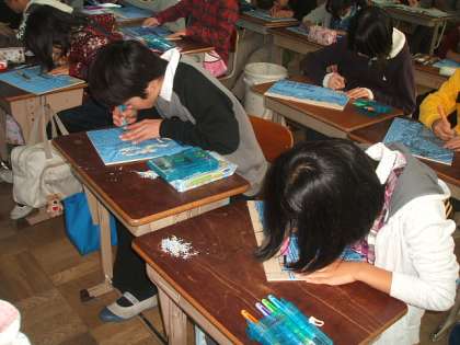 2枚目は,裏から,絵の具で色を入れて,多色の作品に仕上げます。
