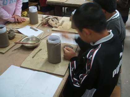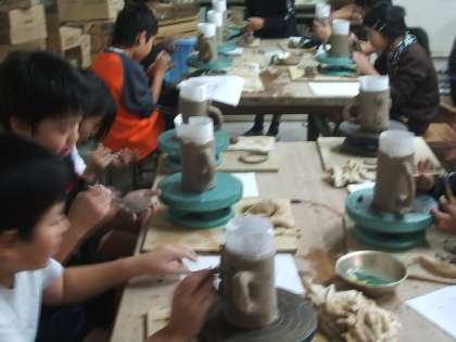 5年生は板作りで,マグカップを作りました。
