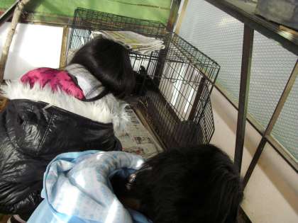 冬休みの間もうさぎのななとアーウインは学校の飼育小屋で暮らしています。