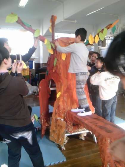 木に枝と葉っぱをつけました。これから飾りもつけます。