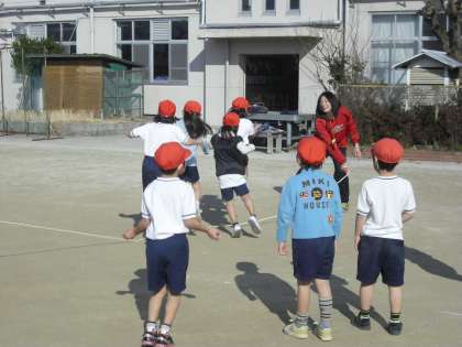 1年生が元気に大縄跳びをしていました。