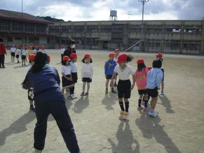 体育の時間もなわとびでウオーミングアップです。