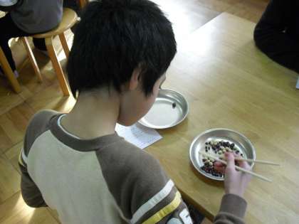 月曜日は高学年。さすがにお箸の使い方がうまい。