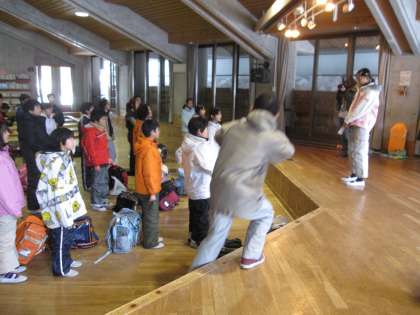 花背は雪に埋もれています。雪・雪・雪の世界に子どもたちのテンションもあがってきました。昼食後はいよいよソリすべりです。