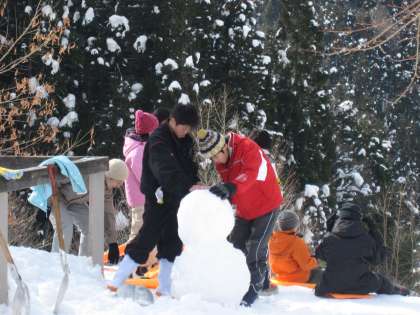 例年にない花背の雪に、かまくらや雪だるまを作るもの、さてはツララにびっくりしたり、新雪の上を転げまわったりと、雪と氷の感触を十二分に味わいました。