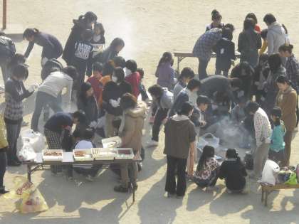 3年生は,社会科「むかしをつたえるもの」の学習で七輪体験をしました。炭に火を付けるのはなかなか難しいです。お母さん世代も初めての経験で親子でわいわい楽しみながら火をつけていました。