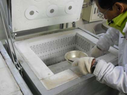 粘土を石膏型にはめて一つ一つ成型していきます。