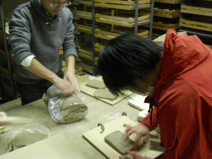 隣の部屋では,6年生の卒業制作で使う陶板のタイルを作っていました。