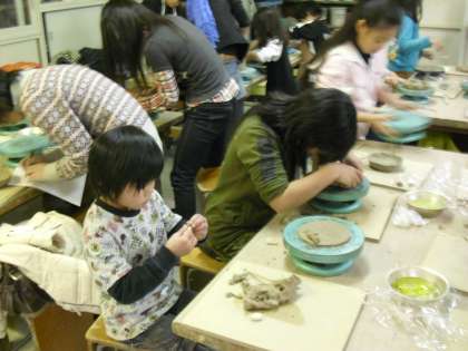 月輪中学校三小学校区コミュニティ事業陶芸教室