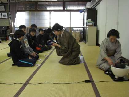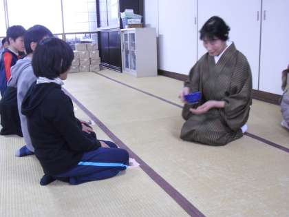 地域の匠に指導していただいて作った茶碗で,地域女性会の茶道部の先生の指導で茶会を開いて学習の締めくくりをしました。