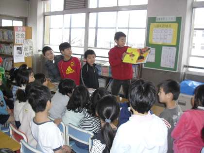 2月18日(金)の中間休み,図書委員による読み聞かせがありました。