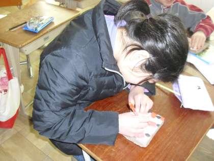 タイルに下絵を写す作業をしました。