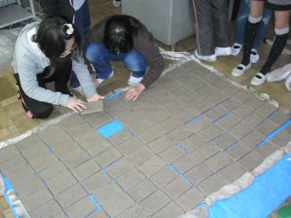 卒業制作・タイルに下絵を写す
