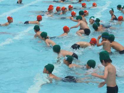 気温は25度に上がりましたが,水温も低く寒く感じました。でも子ども達は元気いっぱい,水を楽しんでいました。