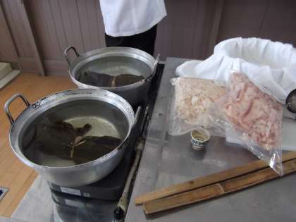 京料理「瓢亭」のご主人高橋英一さんと息子さんに来ていただき,6年生30名が京料理についての学習をしました。