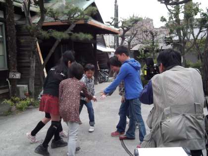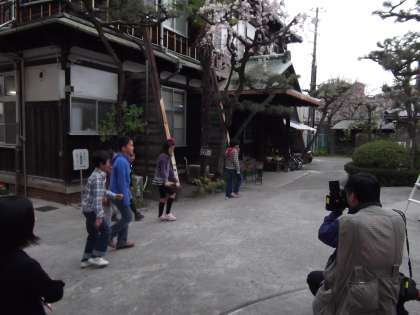 京都新聞社の水曜写真館「まなびや点描」というページで,市内中心部で唯一残る今熊野小の「木造校舎としだれ桜と子どもの姿」を取材したいという申し入れがありました。 本日雨が降る前にと,取材の方が来られ,5年生の子どもが本館で遊ぶ姿をカメラに収めていかれました。どんな記事が掲載されるのか楽しみです。