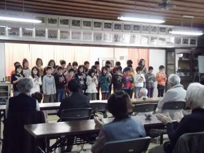 「ビリーブ」の合唱に,来られていた方から「さすが5年生」とのささやきが聞こえました。次はリコーダーによる「ガボット」,みんなから手拍子をもらい,楽しいメロディーがより一層弾んで聞こえました。最後は「こいのぼり」,「いらかの波に雲の波〜」とても元気な声で発表を締めくくることができました。その後握手を一人ずつしました。