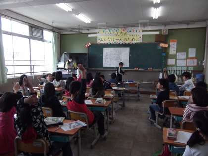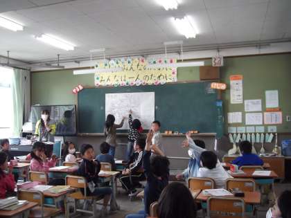 3年生の社会科「わたしたちのまち」の学習で,自分の家の近くにあるものを紹介しました。紹介文をかき,校区の地図に付箋で場所を入れていきました。よく知っている場所でも,なかなか地図上では見つけられず「そこ違う。こっちこっち。」ととても盛り上がった学習でした。