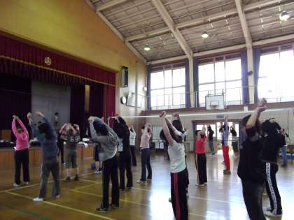 あいさつの後,体慣らしの準備体操をしました。ケガなく楽しく,各学年の保護者間の交流が深められたらと思います。